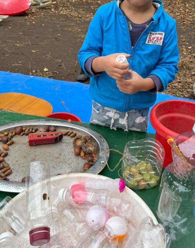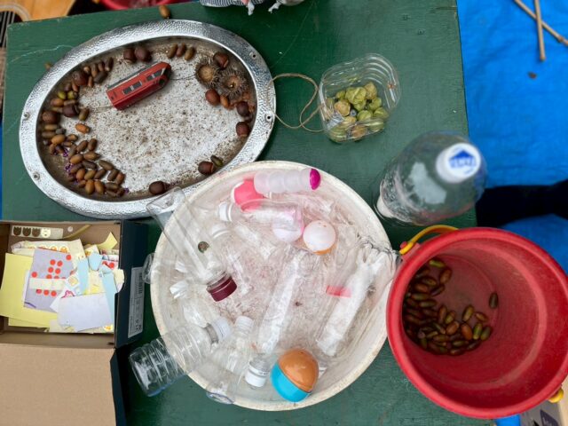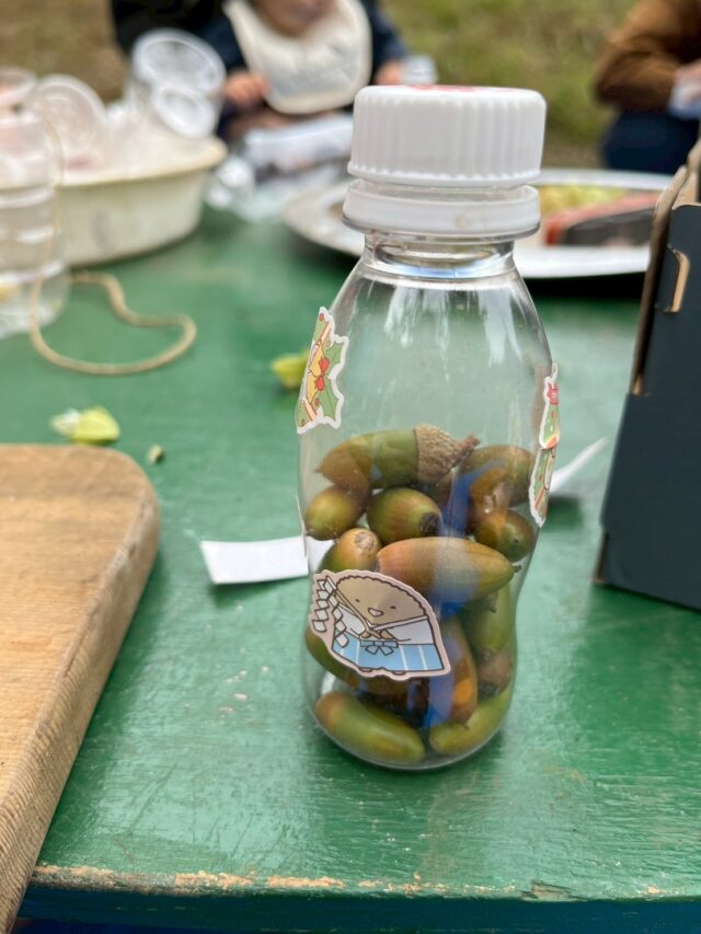 どんぐりや木の実などを集めて、マラカスを作りましょう。