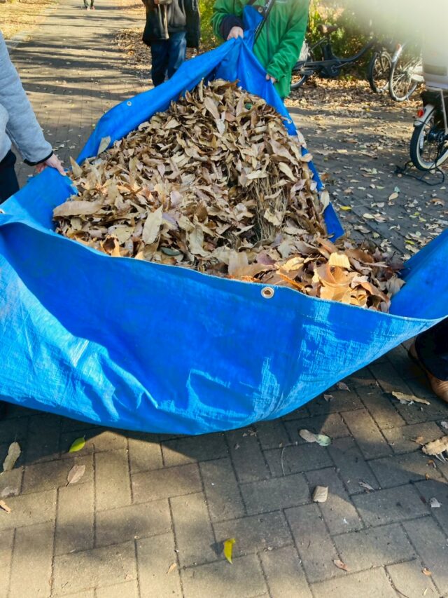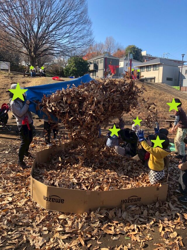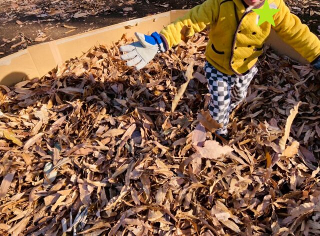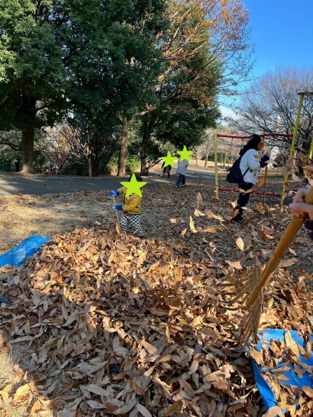 落ち葉を集めよう!と大人も子どもも一緒に頑張ります。