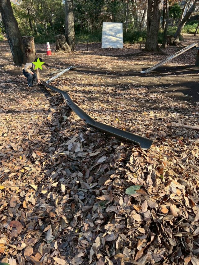 今日は小さな落ち葉山の上においたので、普段とちょっと雰囲気の違うコースができていました。