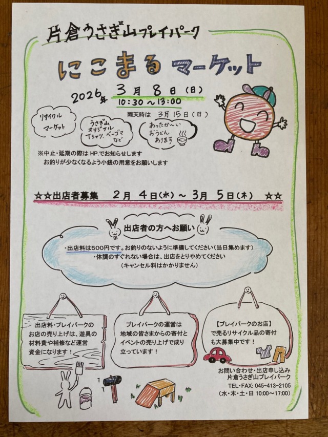 3月8日(日) にこまるマーケットやります(雨天時:3月15日)