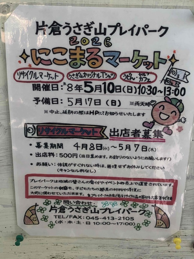 5月10日 にこまるマーケット 開催します 2026年4月22日 最終更新日時 : 2026年4月21日 世話人 5月10日ににこまるマーケット(リサイクルマーケット)を開催します! ただいま出店者募集中です。 当日はうどんの販売も行う予定です。 小銭を持って遊びに来てくださ~い!